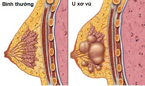- Các khối u vú hoặc u này dày lên có xu hướng hòa trộn vào các mô vú xung quanh